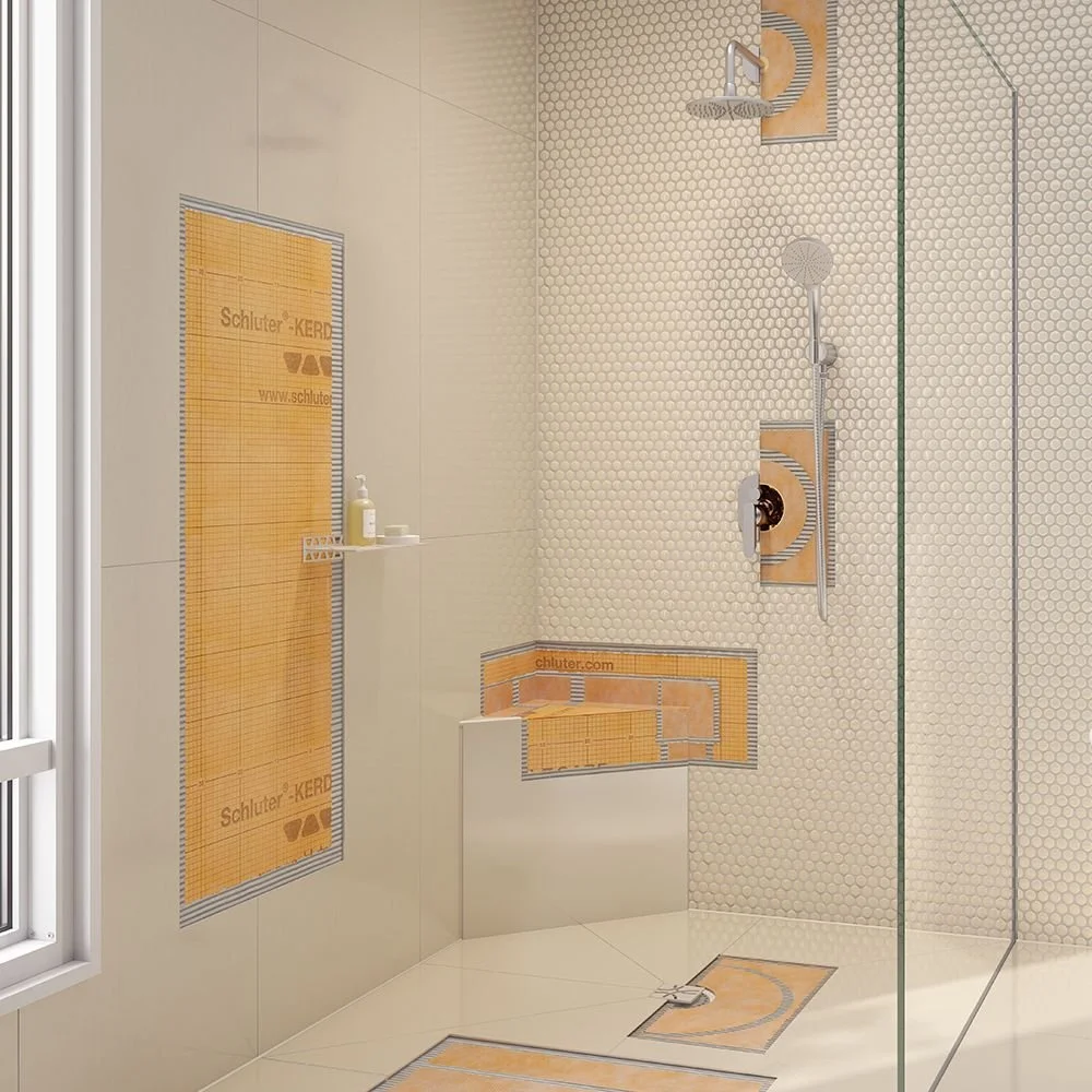 Le système de douche Schluter est une solution moderne d’étanchéité pour douches carrelées, combinant membranes imperméables, drains adaptés, bases à pente et accessoires, pour offrir une douche durable, étanche et esthétique.